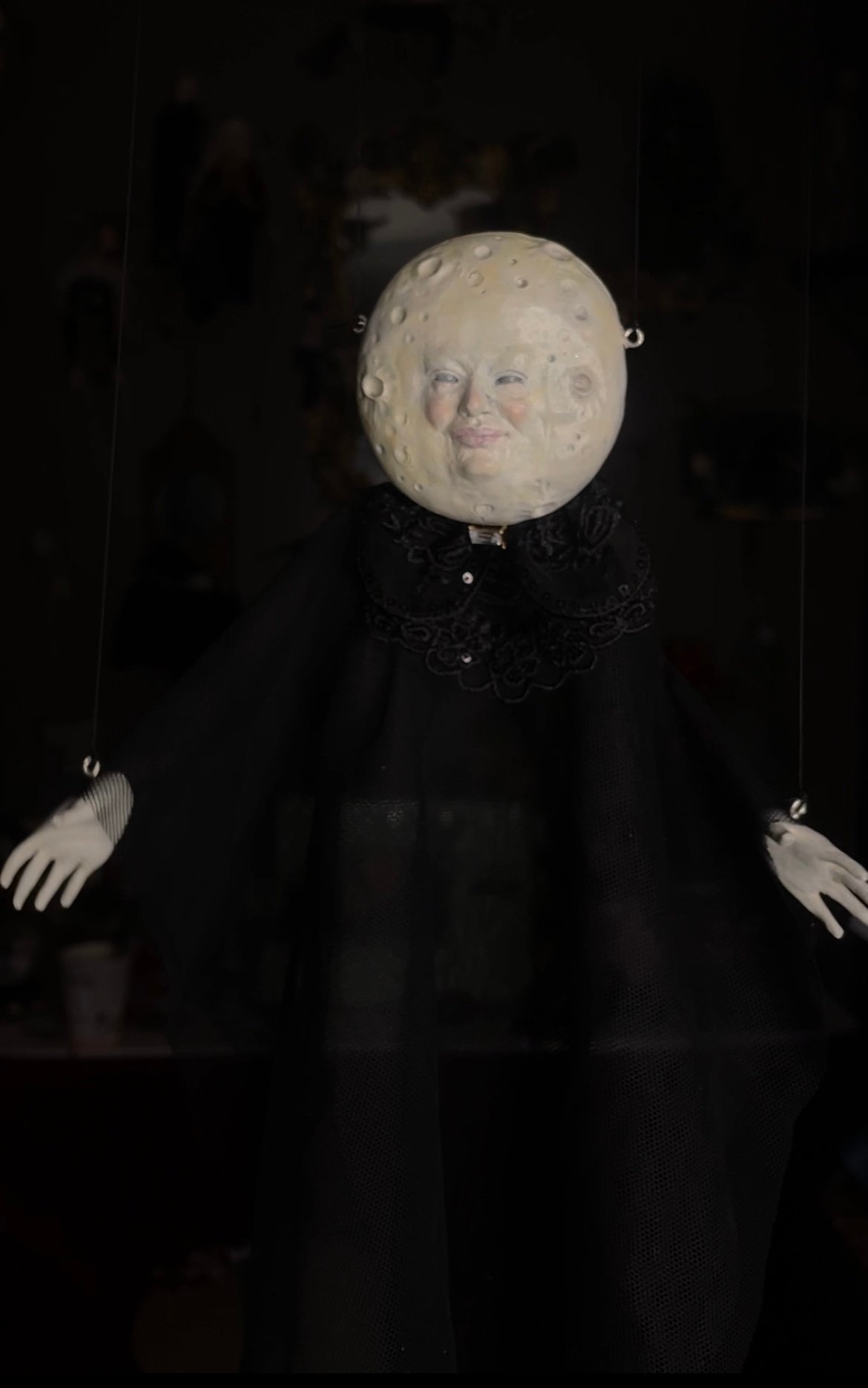 The harvest moons are bodiless so that they can float through the night sky, but are strung like a marionette.
